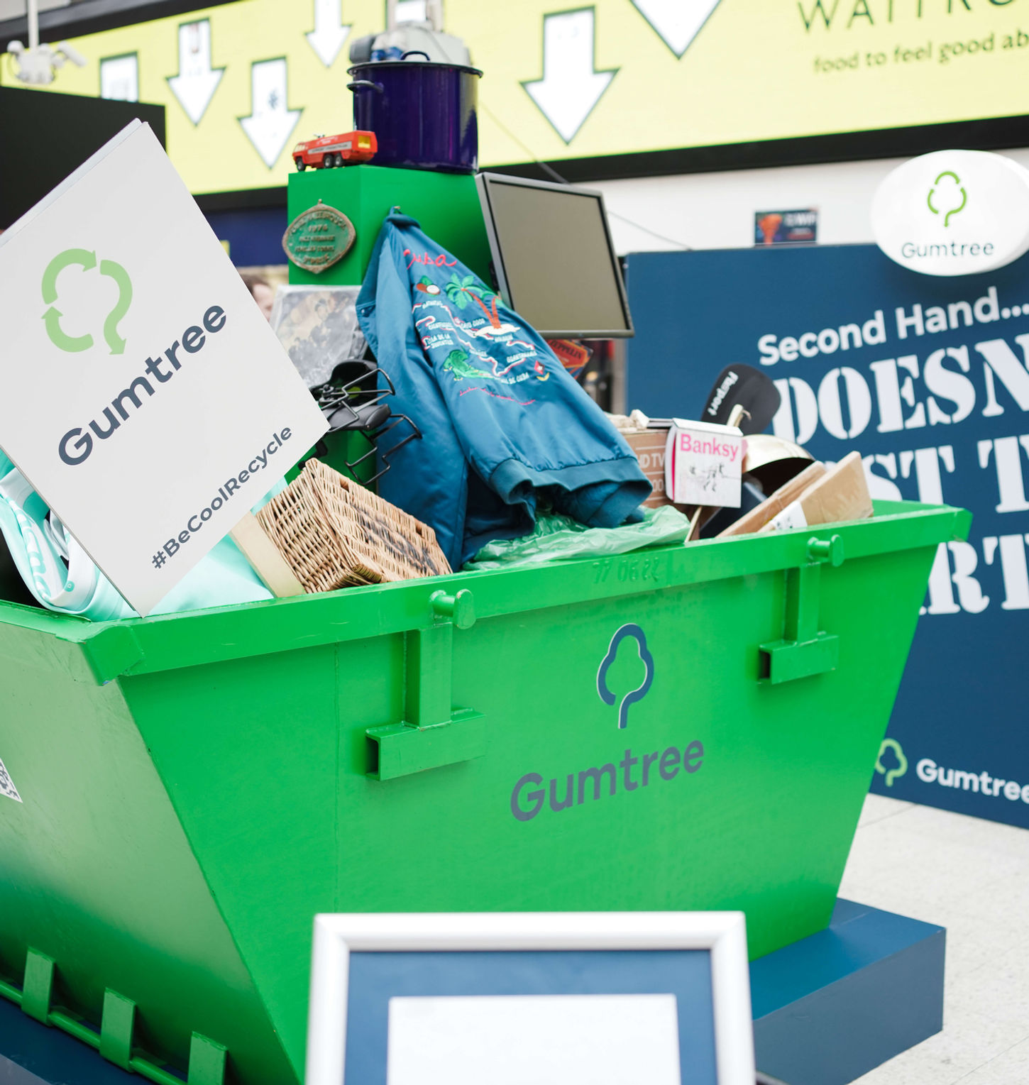 We orchestrated an electrifying brand activation that resonated with unmistakable clarity, a harmonious symphony of values brought to life. Picture this: a colossal Gumtree-themed skip overflowing with a treasure trove of extraordinary products, ripe for the winning. Our masterpiece took center stage at none other than London Waterloo, the bustling epicenter of commuters' journeys, for a captivating two-week spectacle.